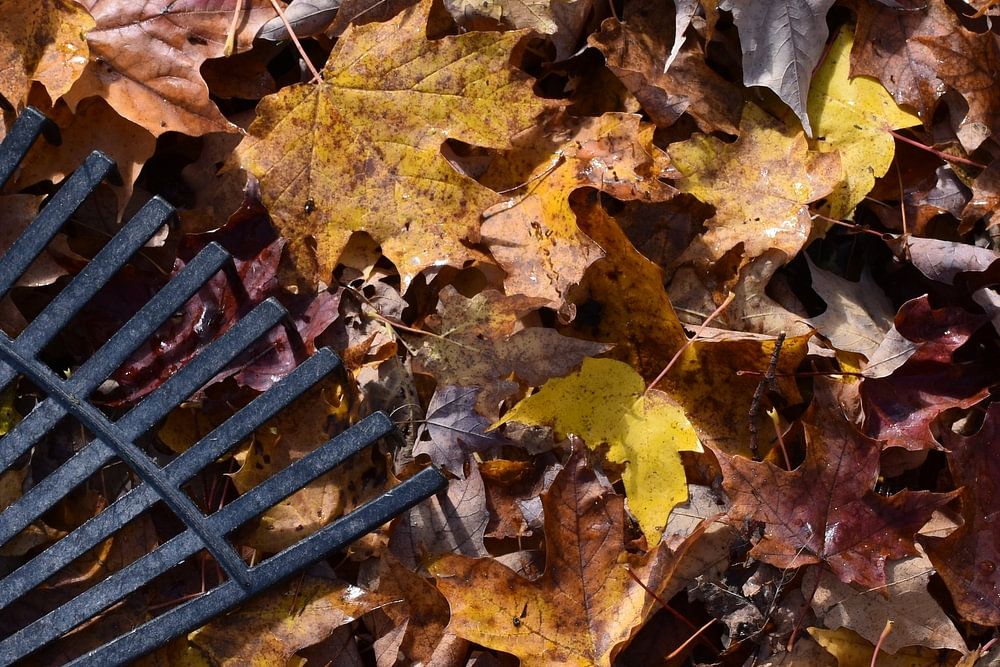 A rake on autumn leaves, Sainte-Apolline, Quebec, Canada