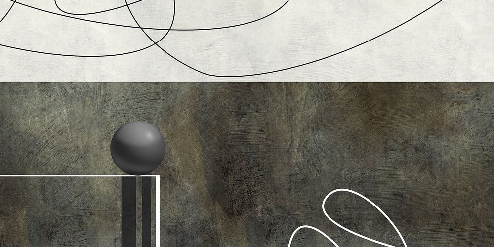 Minimalist abstract work with neutral beige and gray tones.