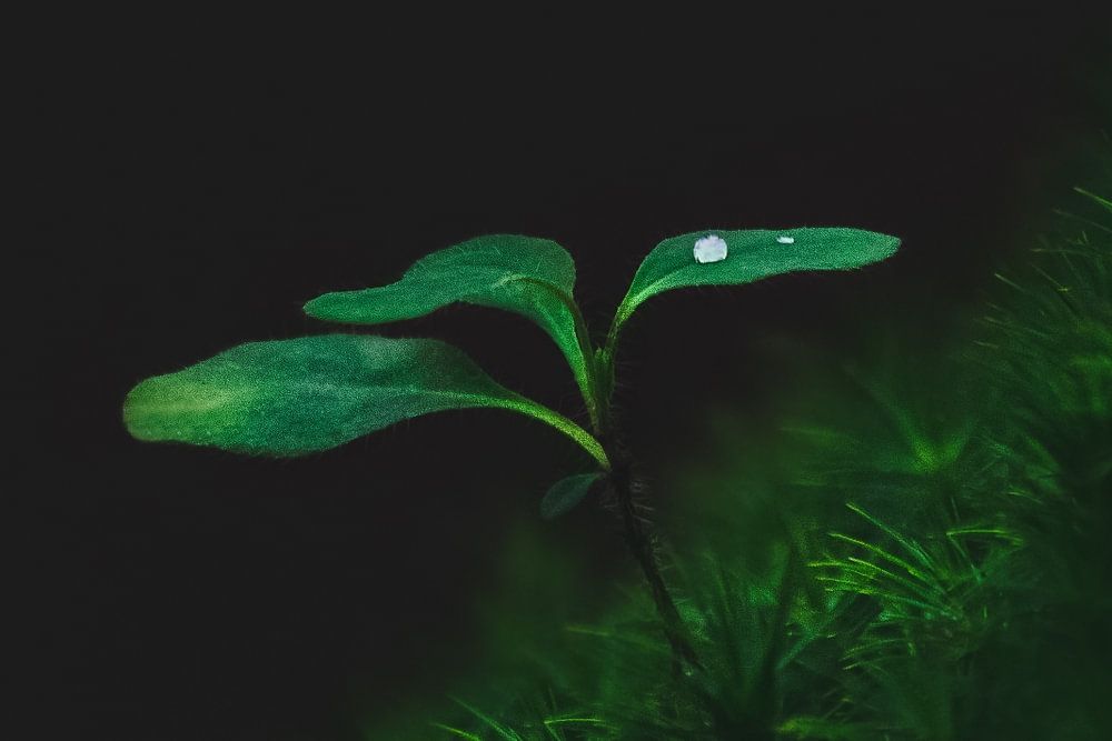 I noticed this small plant in the dark forest as it was growing all alone on a lush green carpet of moss. The small drops of water and the soft light with the black background create a nice contrast and emphasize the asymmetrical shape of the image composition.