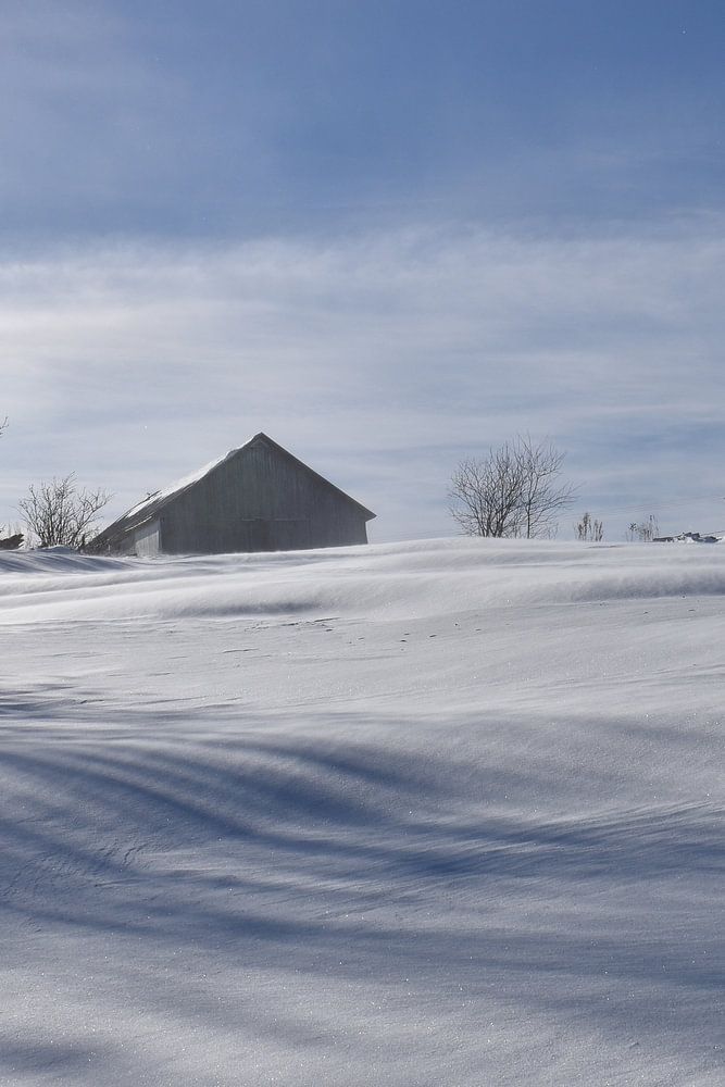 A snow-covered field on a cold February day, Sainte-Apolline, Quebec, Canada