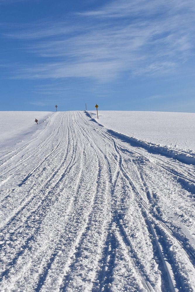 Buy the photo A snowmobile trail in a field by Claude Laprise on canvas, ArtFrame, poster and wallpaper, printed on demand in high quality.
