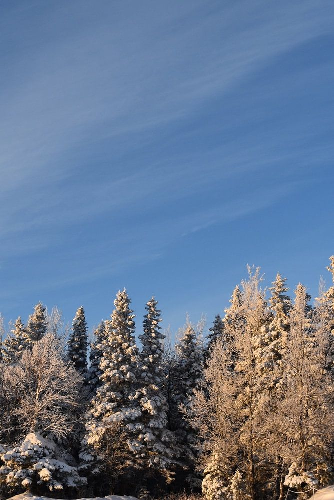 A snowy forest at the end of the winter day, Sainte-Apolline, Quebec, Canada