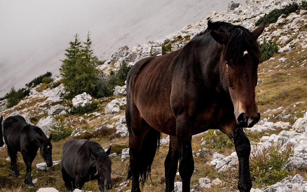 While hiking around the Drei Zinnen / Tre Cime in the Dolomites, we saw this beautiful span of horses passing by.