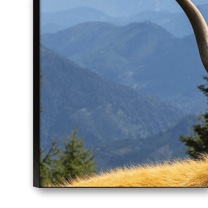 Buy this highland cow art A staring Highlander by sQuarecoW on canvas, ArtFrame, poster and wallpaper, printed on demand in high quality.