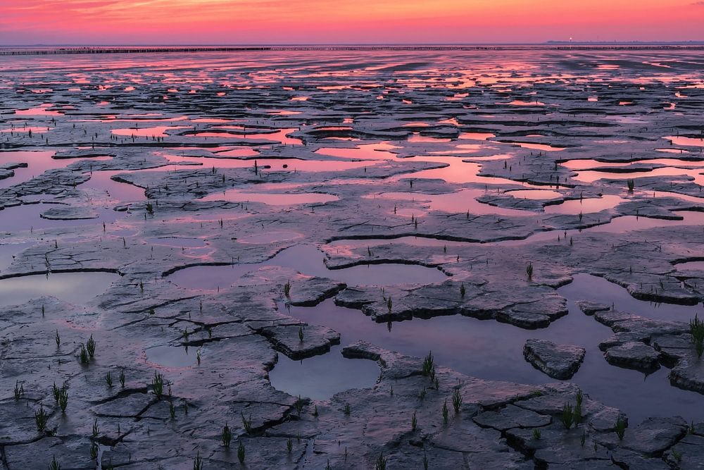 In the north of the province of Groningen near the dyke behind Uithuizen is the Uithuizerwad. A beautiful piece of nature and Wadden Sea which consists of mud flats and channels and salt marshes outside the dike. Because of the drought in summer, you can see beautiful structures forming here. Little eelgrass grows on the structures