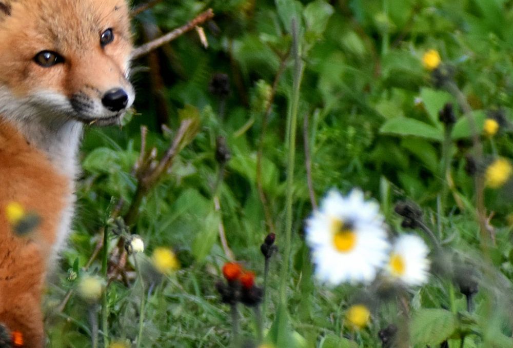A young fox in a field, Sainte-Apolline, Quebec, Canada