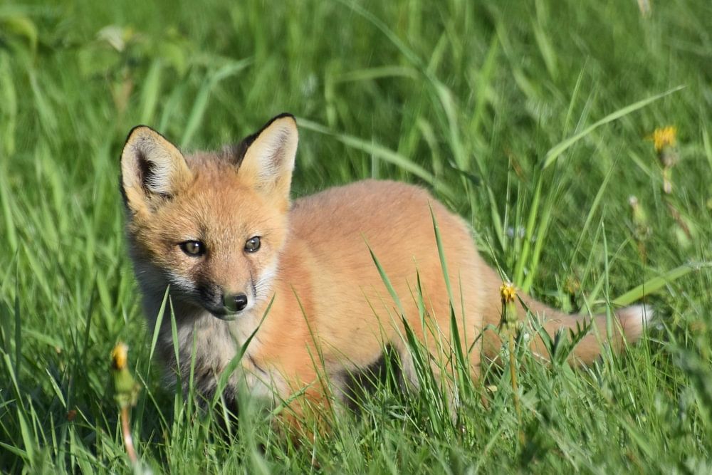 A young fox in a field, Sainte-Apolline, Quebec, Canada