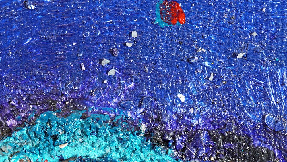 Acryl auf Leinwand mit Modelliermassen, Pigmenten, Steinen, Sand, Metallstücken, Glasresten und –perlen, Schlagmetallen, Halbedelsteinen, Spiegelsplittern, Schmuckresten
