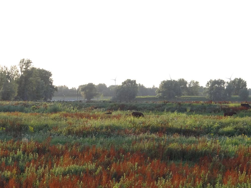 Assimilatie: koeien in hun omgeving, de kleurrijke uiterwaard De Waard van Keulen in avondlicht.