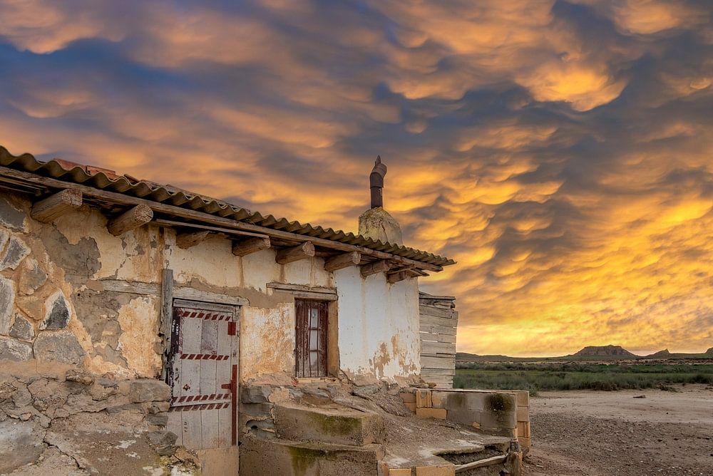This lonely abandoned house stands in national park Bardenas Reales in northern Spain which has become famous for its sandstone sculptures and the filming of one of the episodes of Star Wars