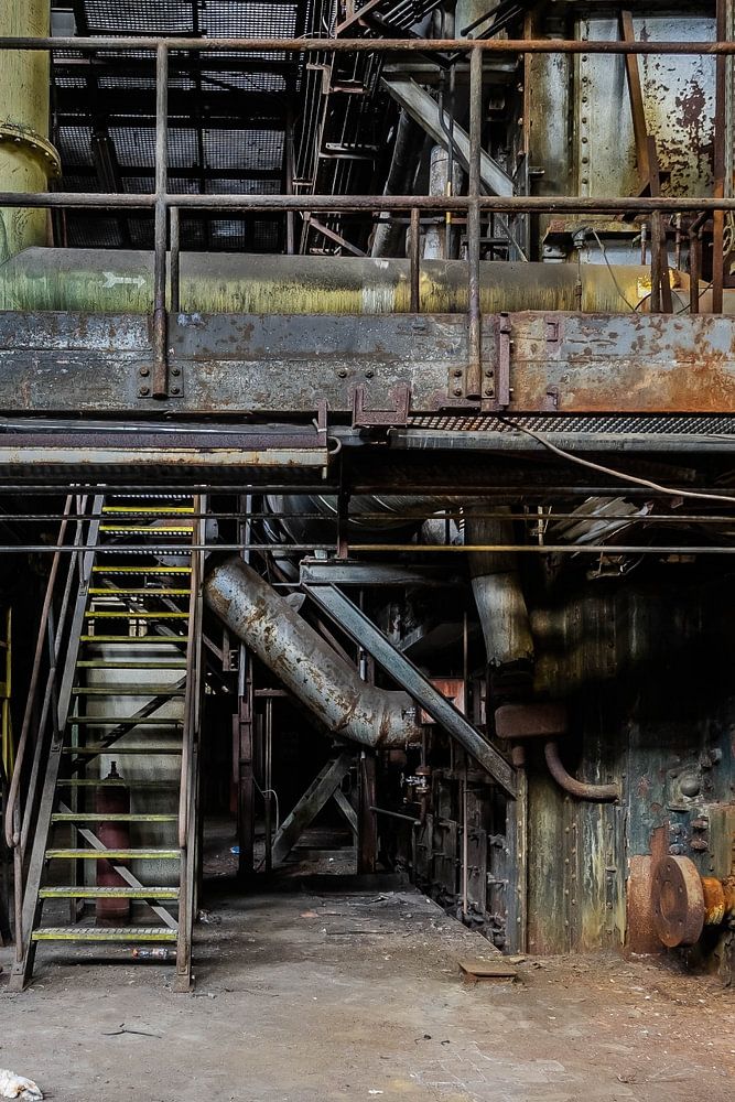 This abandoned power plant ran on coking gas and stands out for its complex architecture, pipes and large turbine halls. Thanks to its old and somewhat dirty appearance, this place offers a great place to photograph. It is bright from the side with colourful elements in the large hall.