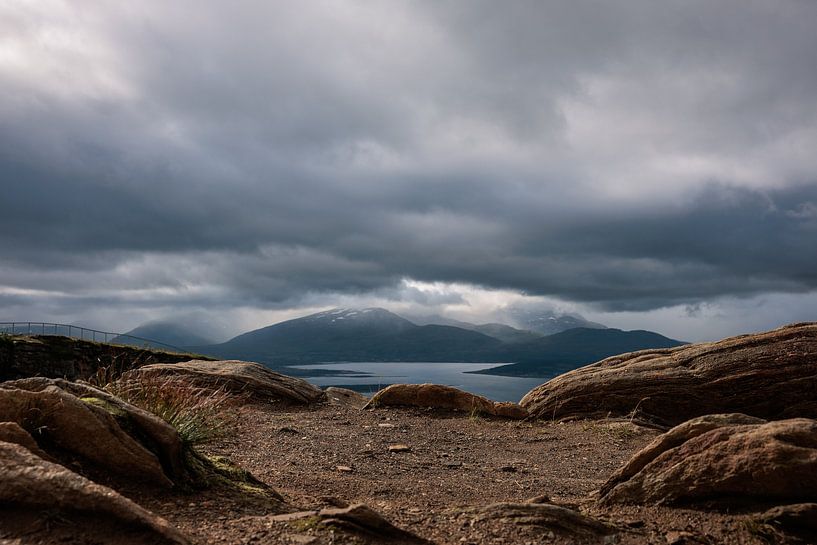 View of the mountain landscape near Tromsø, Norway.