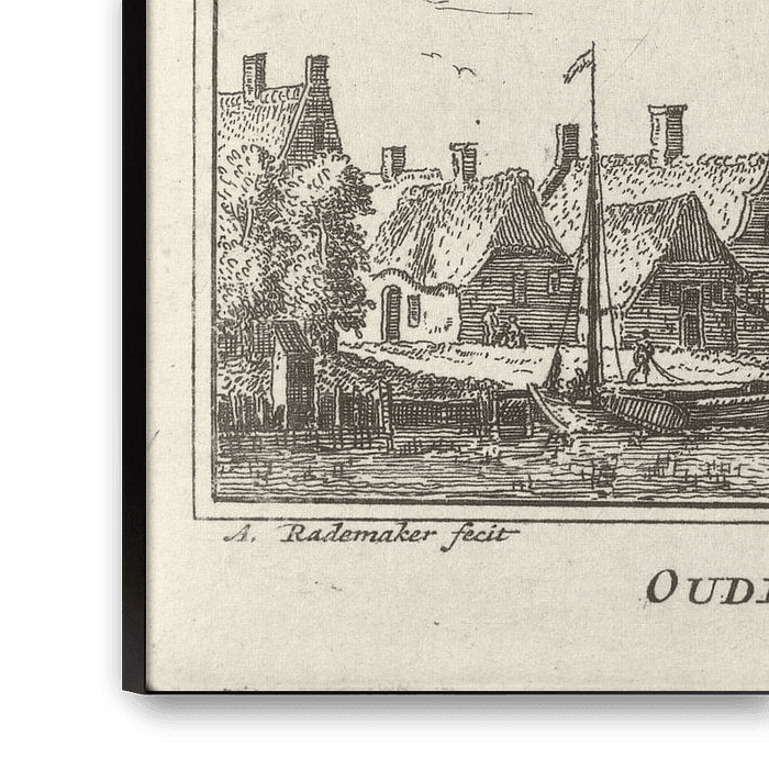 Etching with a city view and a church.