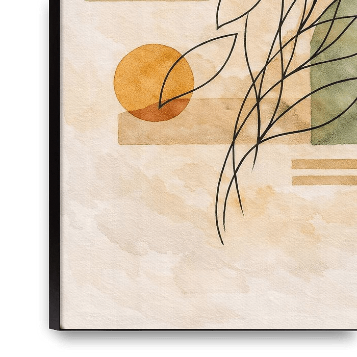 An abstract botanical line art artwork featuring organic shapes and soft geometric elements. Designed for Scandinavian and minimalist interiors, this piece adds subtle visual interest while maintaining a calm and balanced atmosphere. Ideal for bedrooms or modern living spaces.