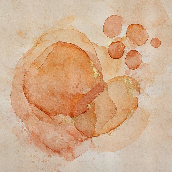 Abstract watercolour with transparent circles in terracotta and sand tones: warm, minimalist and soothing.