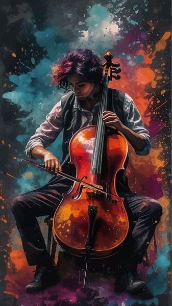 Buy this digital art artwork Abstract Cello Performance – Painterly Music Art by MIROKKU as a reproduction on canvas, ArtFrame, poster and wallpaper, printed on demand in high quality.