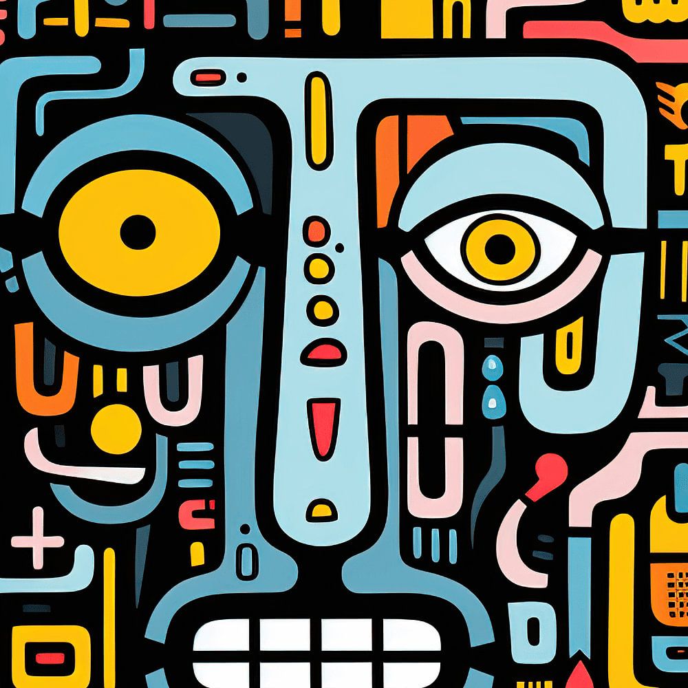 A colorful and abstract illustration of a face made up of a maze of lines and shapes in various colors. The image has a black background and a futuristic or technological feel to it.