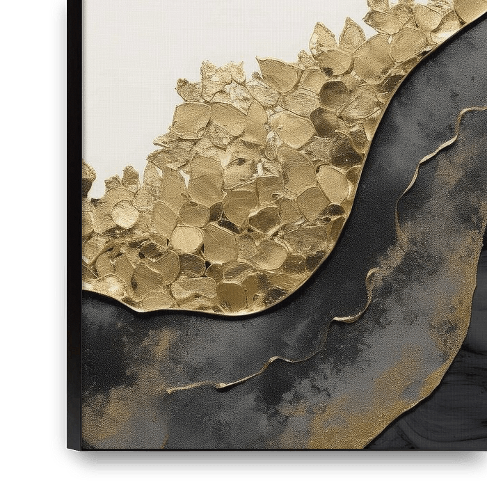 Abstract Elegant dynamic and vibrant gold masterpiece decor that adds an avant-garde touch to any space. Immerse yourself in a world of color, form, and emotion as you gaze upon this stunning piece that transcends the ordinary.