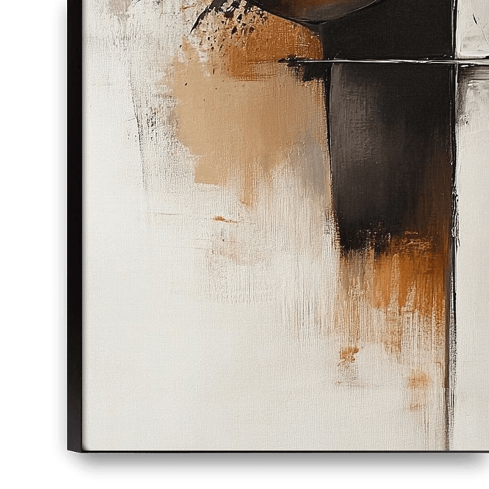 Abstract | Harmony in Contrast - This abstract painting is characterised by flowing geometric shapes in a palette of brown, black and white, emphasising the contrasts and harmonious integration of the shapes.
