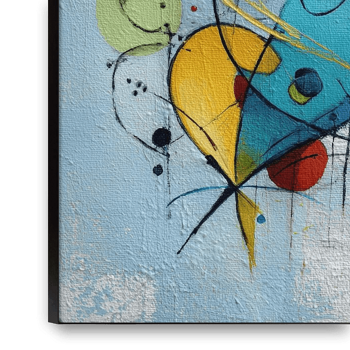 Buy this abstract artwork Abstract Painting - Blue Yellow Cheerful Geometric by Joriali Abstract on canvas, ArtFrame, poster and wallpaper, printed on demand in high quality.