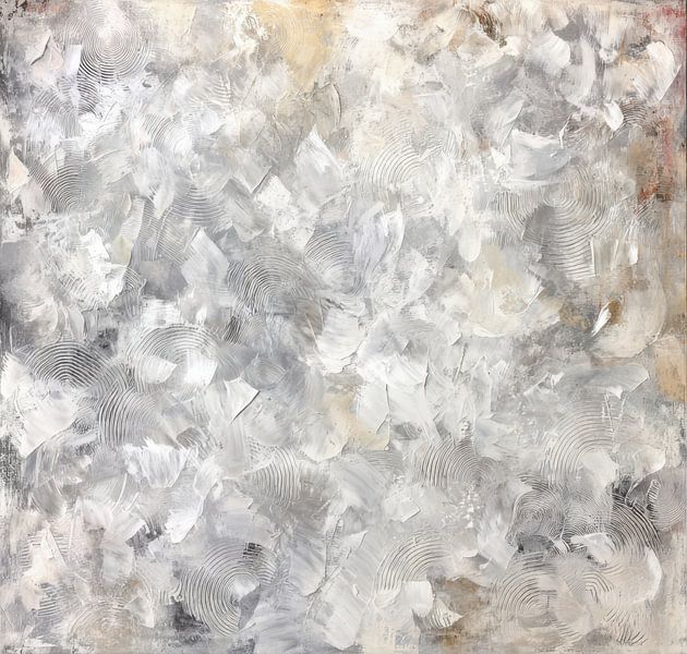 Abstract painting created with a light palette of white, soft grey and subtle beige accents. This work is all about light and space. The soft movements and light colours make it a painting you can look at calmly every day. The visible paint structure gives the work a lively character without being busy. This work brings peace and air…