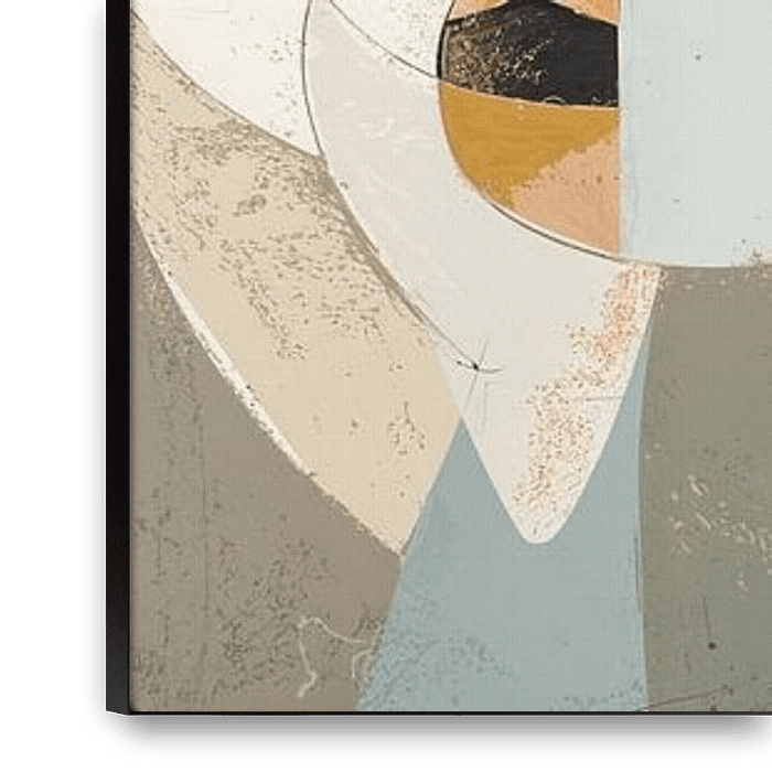 Abstract People Painting | Soulful Silhouettes Ensemble - This abstract painting portrays a series of stylised human faces, in which geometric and soft organic shapes merge into a dynamic and harmonious tableau. The faces are composed of polygonal shapes, blending together in a soft but diverse colour palette of cream, terracotta,…