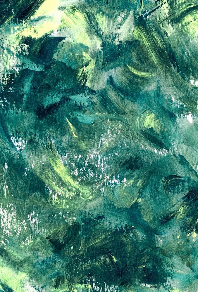 Calliope is a vibrant limited palette riot of colour, texture, and stroke. Green, blue, and yellow twist and merge embracing her individuality and personality; she is somewhat noisier than her sisters Maggie, Lori, and Andrea.