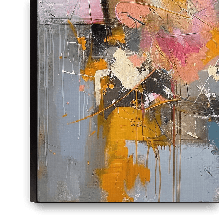 Details: abstract painting, woman painting, minimalist art, pink, orange, yellow, lines, modern art,…