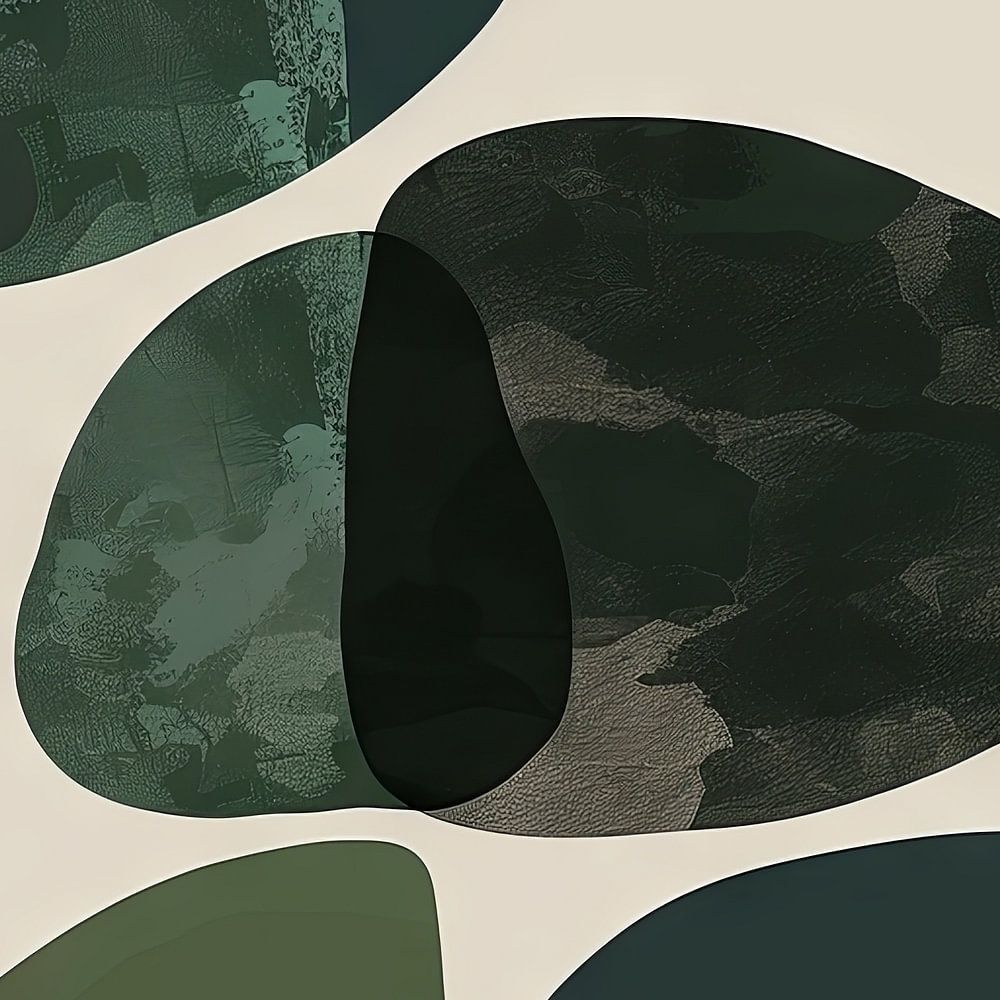 This modern work of art captivates with its organic shapes and deep green tones, which unfold harmoniously on a beige-coloured background. The composition conveys a calm yet dynamic mood, ideal for minimalist rooms or offices. Inspired by nature and Abstract Expressionist art, this painting offers a timeless elegance that will add a stylish touch to any room. Perfect for art lovers looking for a connection to nature and modern abstraction.