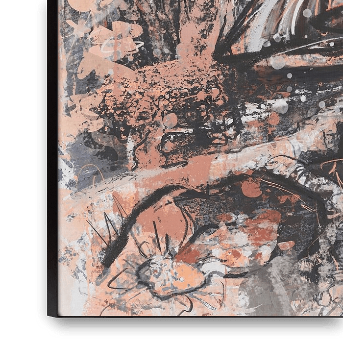Buy this abstract artwork Abstract artwork forest fairy in orange grey and rust brown by Emiel de Lange on canvas, ArtFrame, poster and wallpaper, printed on demand in high quality.