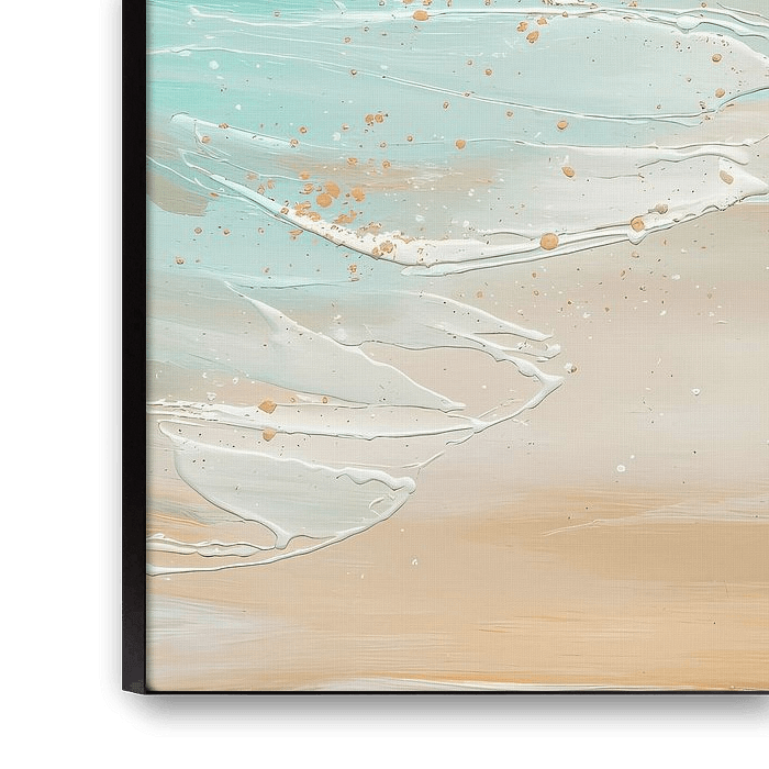 This beautiful abstract design brings the serenity of beach and sea inside. With soft aqua and beige tones, it creates a sense of calm and serenity. The texture of the paint strokes and the subtle contrast between the colours give it a modern and airy feel. Perfect for a bedroom or dining room, this artwork fits into minimalist and modern interiors. It adds a touch of nature and relaxation to any space. Get carried away by the peaceful atmosphere and timeless character of this unique creation.