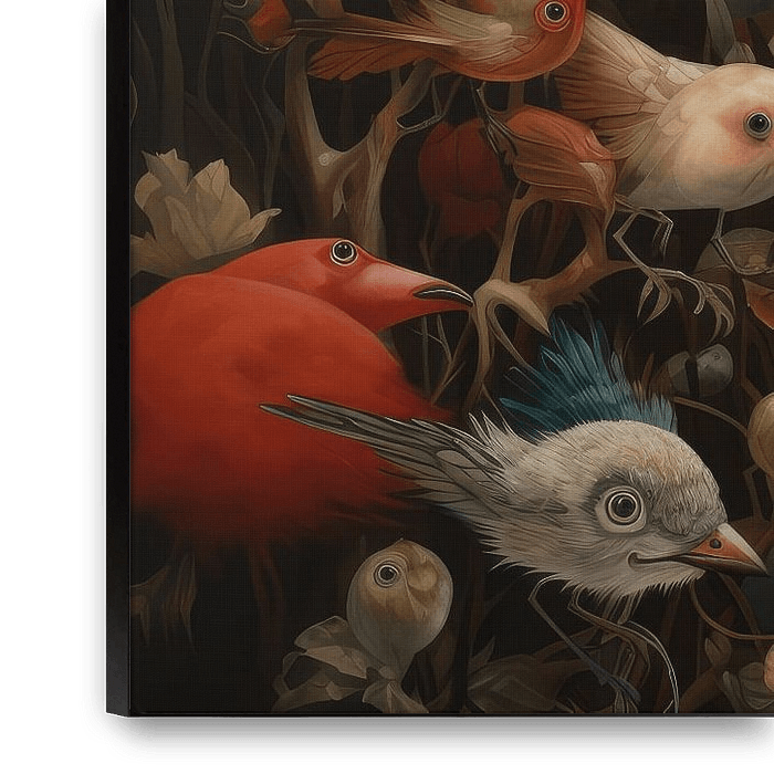 Buy this bird art Abstract bizarre female portrait with unusual birds by Art Bizarre on canvas, ArtFrame, poster and wallpaper, printed on demand in high quality.