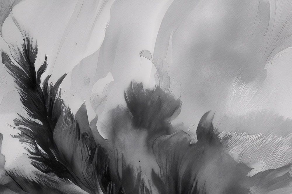 A sophisticated artwork depicting abstract feather-like shapes and movement in a monochrome colour palette. This design exudes elegance through its subtle dynamics and is perfect for serene and modern décor. Ideal for bedrooms or offices where a minimalist accent is desired.