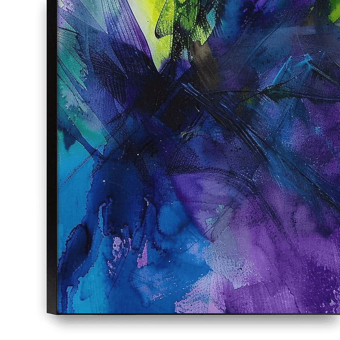 This abstract artwork is a vibrant explosion of colours that dynamically meet on the canvas. The bright shades of yellow, green, purple and blue create a fascinating fusion of energy and movement. This artwork is ideal for modern interiors where colour and expression are key. The design evokes a sense of freedom and creativity, making…