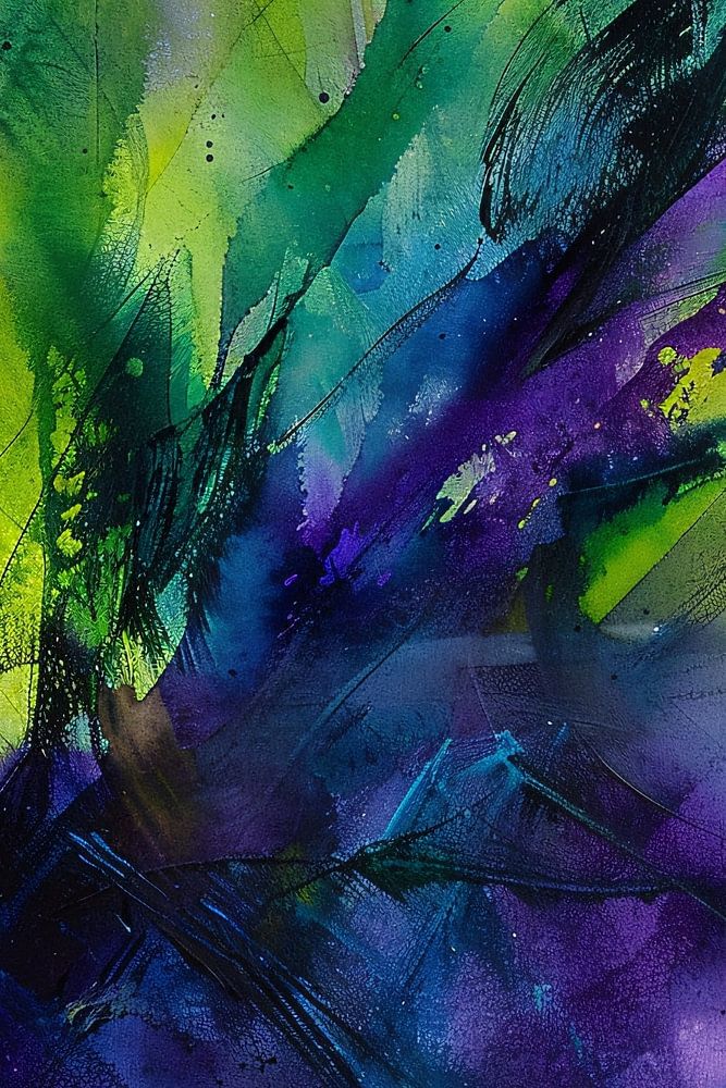 This abstract artwork is a vibrant explosion of colours that dynamically meet on the canvas. The bright shades of yellow, green, purple and blue create a fascinating fusion of energy and movement. This artwork is ideal for modern interiors where colour and expression are key. The design evokes a sense of freedom and creativity, making it perfect for bringing a space such as a bedroom, office or living room to life. The watercolour style creates smooth transitions and soft edges, giving the whole thing a dreamy feel. This design offers endless possibilities for interpretation and appeals to abstract art lovers looking for a unique addition to their interiors.