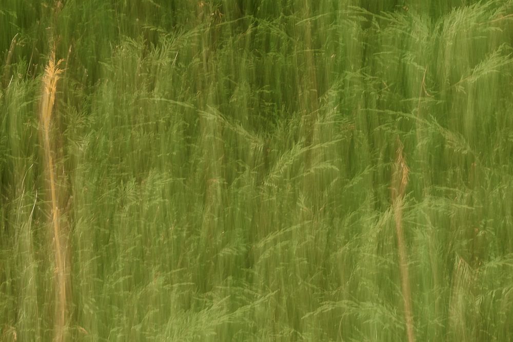 A green conifer hedge in the summer, by using intentional camera movement you get an abstract image.