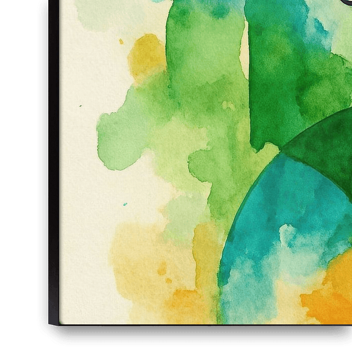 A deer constructed from clean, geometric planes takes centre stage, surrounded by a loose watercolour background in fresh blues and greens. Deep orange accents contrast with cool tones, giving the animal a lively, graphic appearance. The lines gracefully follow the shape of the antlers and body, creating a mosaic-like pattern. The…