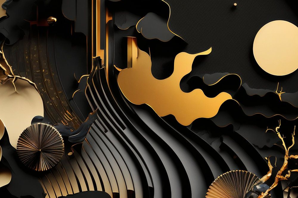 This abstract digital painting with the elegant colour combination of black and gold is a beautiful piece of art that will enhance any room. The deep, rich colours of black and gold create a dramatic effect and attract the attention of everyone who enters the room. This painting has been designed using advanced digital technology and high-quality materials to create a unique and durable work of art. The subtle details and flowing lines of the abstract design give a sense of depth and movement, making the painting seem to come alive. Whether you are looking for a piece of art for your living room, office or bedroom, this painting is guaranteed to enhance the mood and add a sense of class and elegance to any space. It is a timeless piece that will retain its beautiful look even after many years of enjoyment, so what are you waiting for? Order this beautiful abstract digital painting in black and gold colours today and enjoy the luxurious and stylish look it will offer to your living environment. This is an investment in art and design that you can enjoy every day!