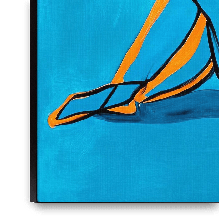 The elegant silhouette of a relaxed figure unfolds in a bright blue colour, framed by lively orange lines. This harmonious combination radiates calm and creativity. Ideal for the living room, it provides a stimulating conversation piece and invites you to dream - a perfect synthesis of art and cosiness.