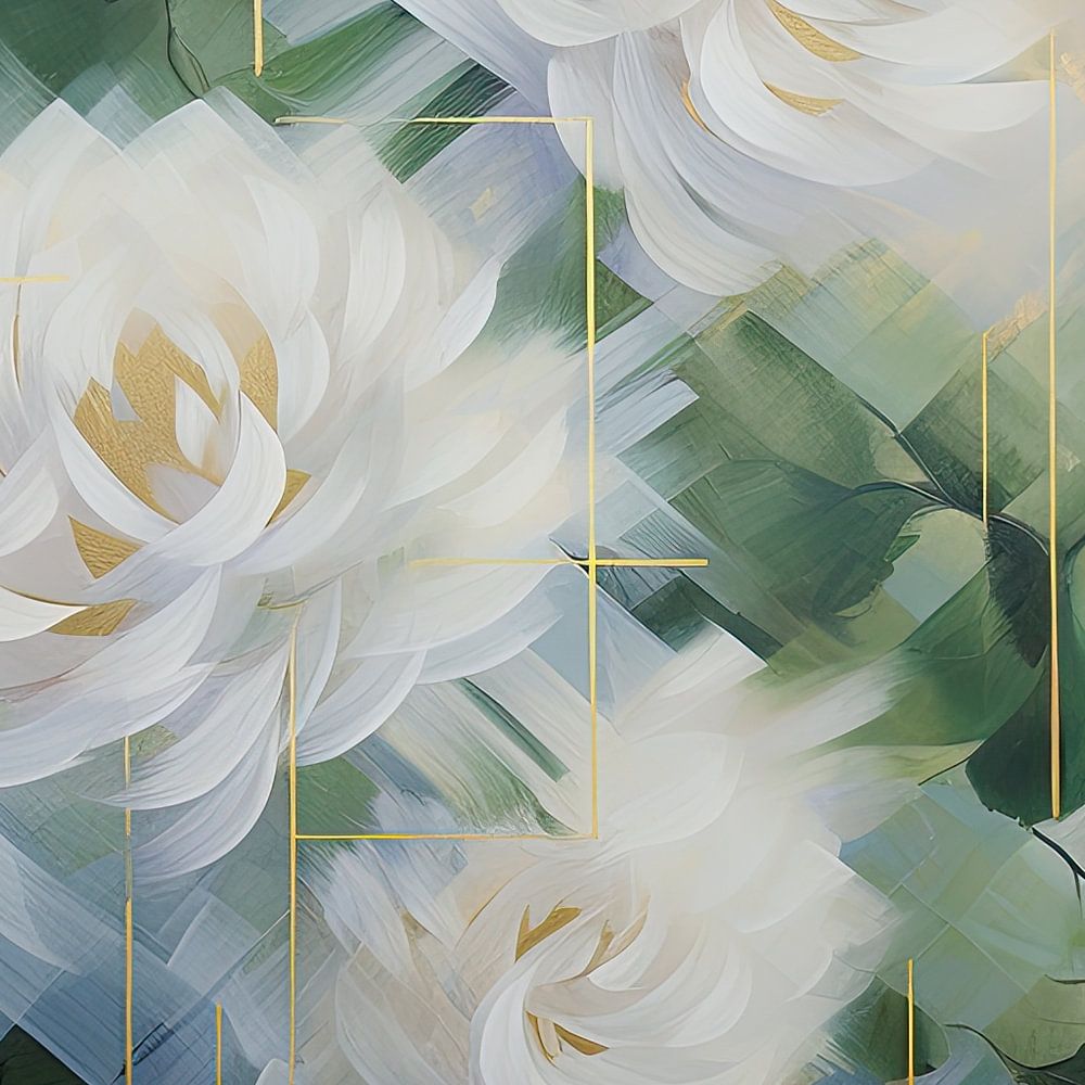 Abstract flowers in blue, green and gold