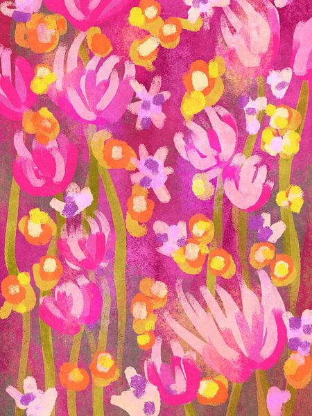 An abstract sea of flowers with an intense pink warmth create a real eye-catcher and bring joy and vibrancy into your home.