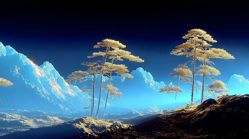 Buy this landscape artwork Abstract landscape with forest and hills by Jan Bechtum on canvas, ArtFrame, poster and wallpaper, printed on demand in high quality.