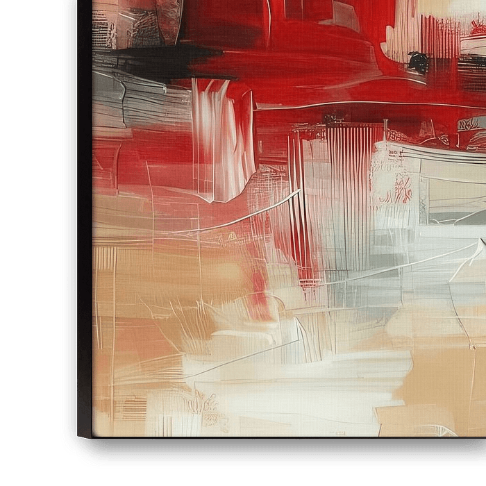 Buy this abstract artwork Abstract landscape with red by Kay Weber on canvas, ArtFrame, poster and wallpaper, printed on demand in high quality.