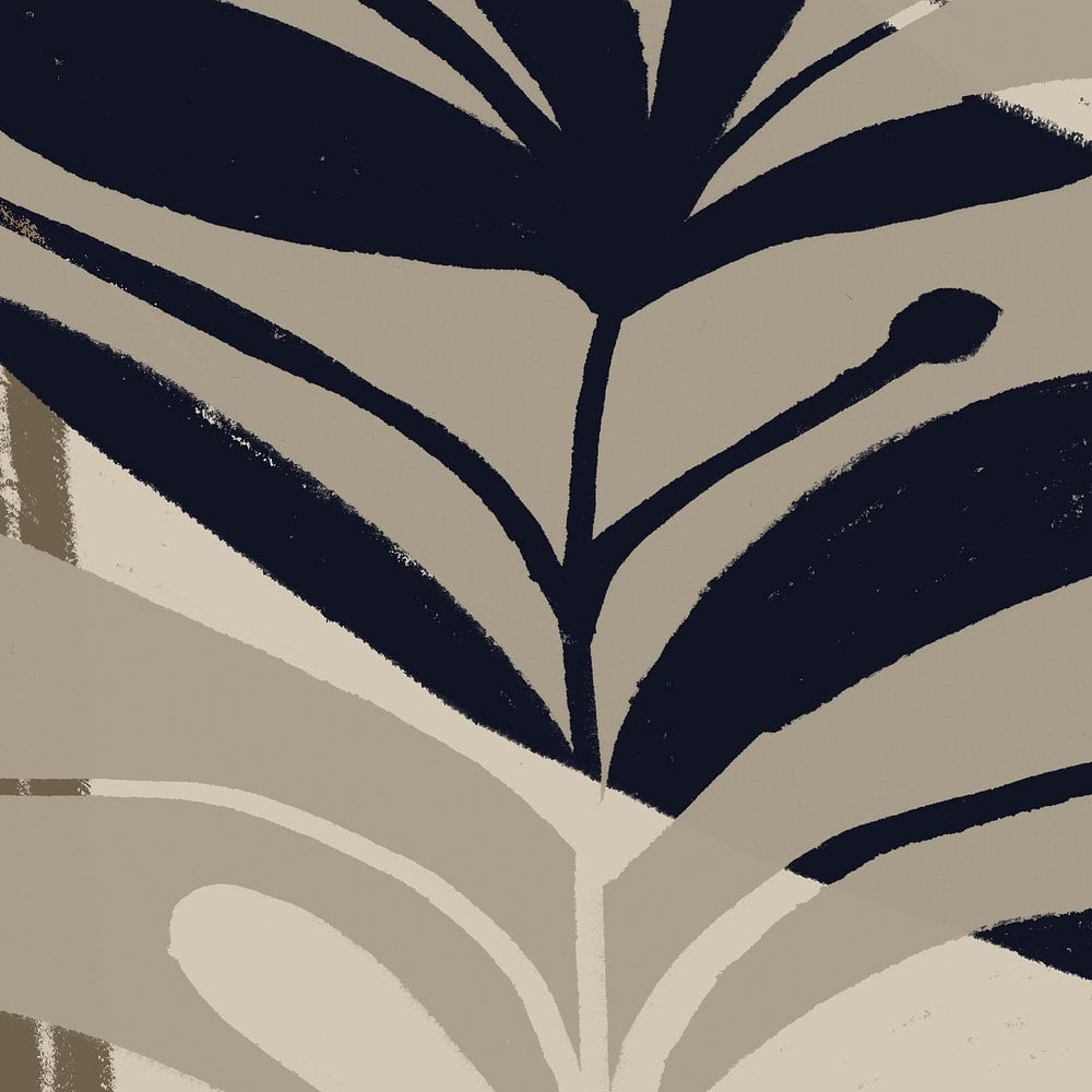 About "Abstract minimalist botanical. Leaf in black, white, brown."