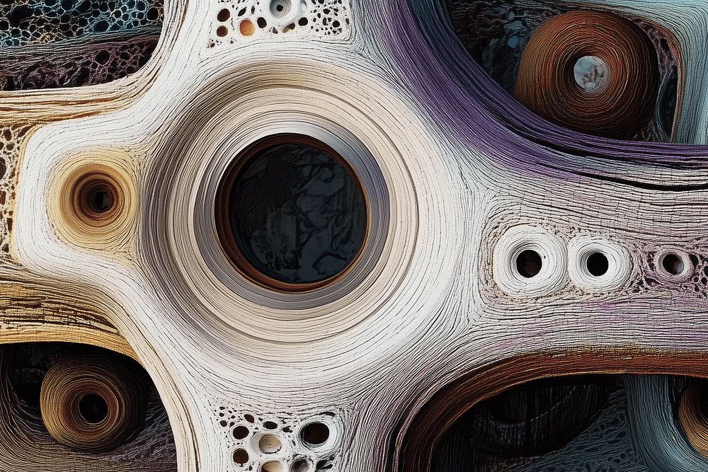 In deze abstracte composities worden vormen zoals golven, bladeren, wolken en gebergtes subtiel verweven, maar zonder traditionele representatie. De geometrische lijnen en vloeiende curves spreken van de onvoorspelbare bewegingen in de natuur—de constante transformatie van de aarde, lucht en water. Cirkelvormen en golvende lijnen lijken de ritmes van de natuur na te volgen, terwijl scherpe hoeken en overlappende structuren de robuustheid van bergen of de complexiteit van wortels en takken symboliseren.