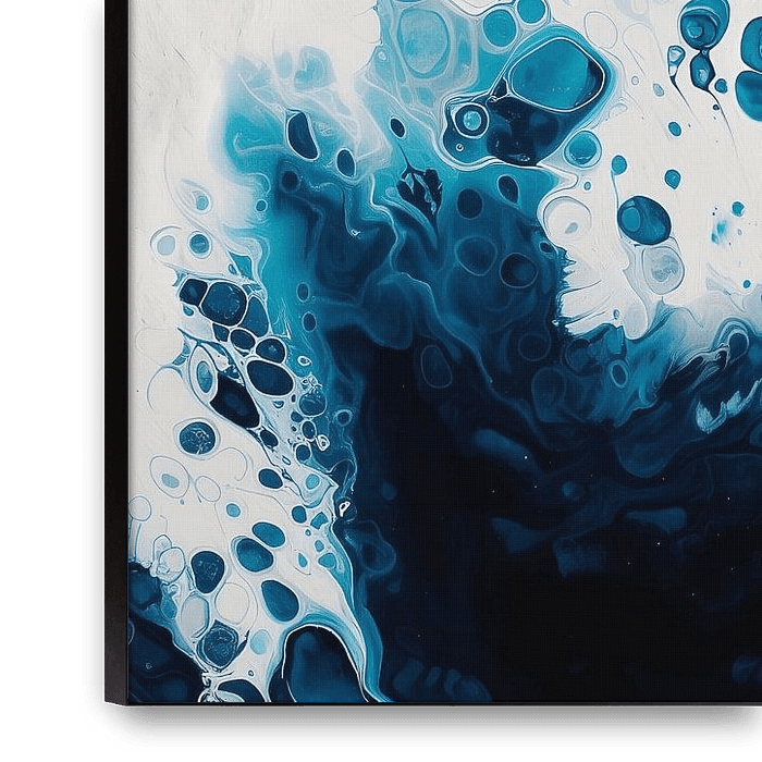 This modern abstract artwork is reminiscent of foaming ocean waves that merge into one another in flowing shades of blue and white. Organic shapes and dynamic structures create depth and movement, conveying both the power and tranquillity of the ocean. The harmonious colour composition makes the picture a stylish eye-catcher for modern…