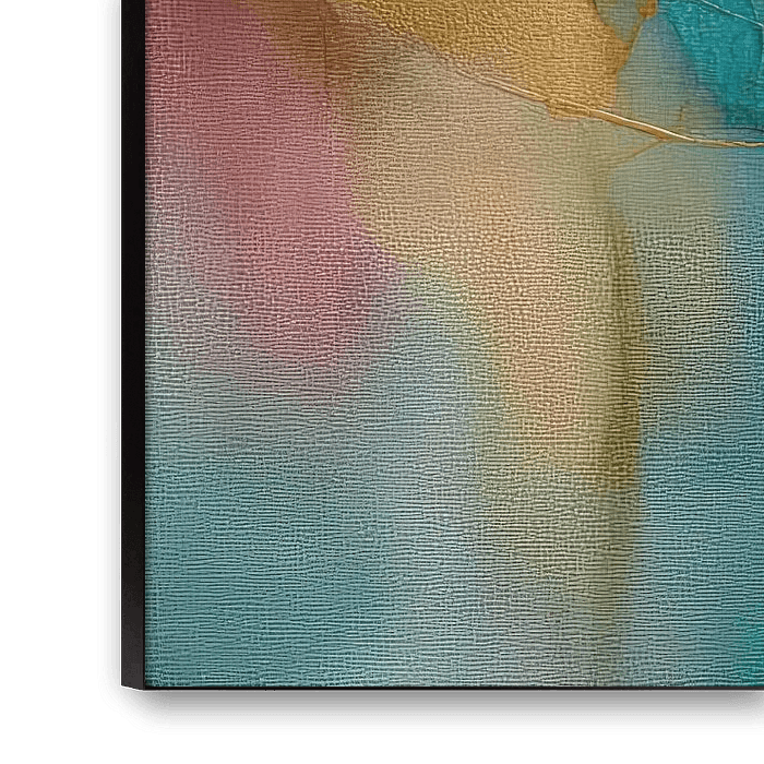 This turquoise abstract painting with golden lines and flowing shapes feels dreamy and elegant, adding style to your interior. It brings calm and sophistication and adds a poetic atmosphere to the room.