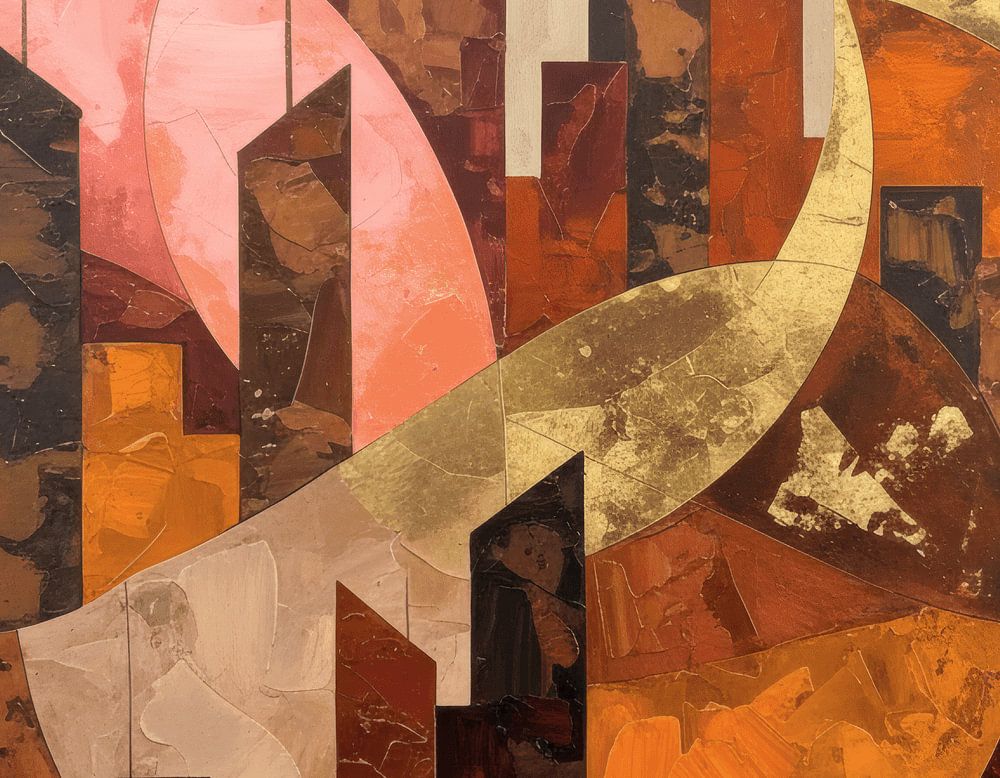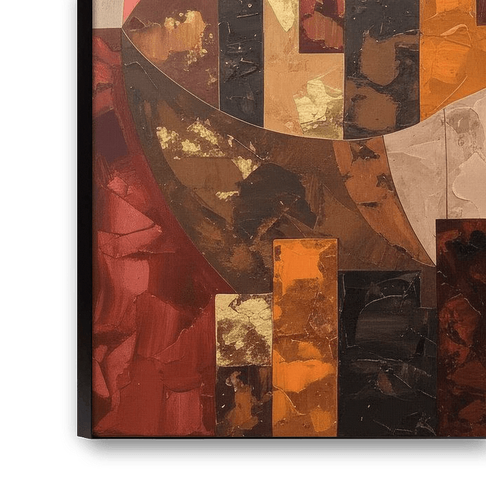 This abstract painting with warm earth tones and gold instantly brings a luxurious and atmospheric feel to your home. The organic shapes flow into each other in a rich palette of copper, terracotta, deep orange and brown, interspersed with shiny gold accents and subtle pink nuances. This modern artwork with organic shapes for living room or office combines warmth with elegance and is a real eye-catcher. As a luxurious wall decoration with copper and terracotta colours, it is ideal for creating a contemporary and stylish atmosphere.