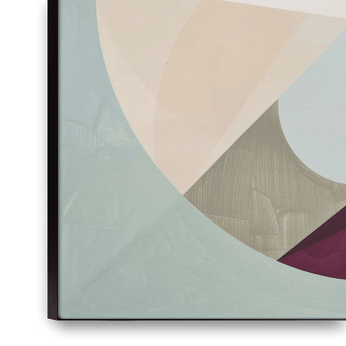 This minimalist work of art impresses with its harmonious composition of geometric shapes and soft pastel colours. The soft pink, beige and green tones create a calming and elegant atmosphere, while the clean lines and circles give the image a modern and contemporary aesthetic. Ideal for stylish living spaces, offices or creative…