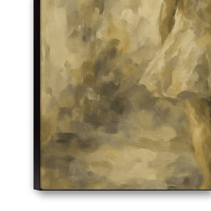 An enchanting painting in which a girl appears among soft shadows and warm tones. The work exudes mystery and poetry, with an abstract touch that stimulates the imagination. Perfect for an interior with character and depth.